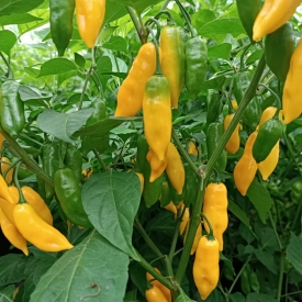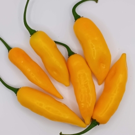 Стручки немного длиннее, чем у красноплодной разновидности. Растение высотой до 90 см с активным боковым ветвлением. Боковые ветки очень активно загружаются стручками. Потенциал урожайности очень хороший. Острота до 500 тысяч сковиллов. Прекрасный фруктовый аромат и сладкий вкус без горечи. Срок вегетации 140–150 дней при выращивании в теплице. Можно выращивать в домашних условиях в горшке от 5-ти литров.