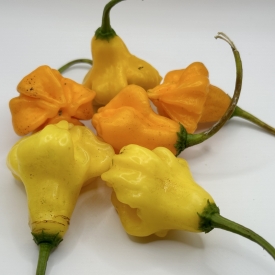 Интересный слабо острый сорт острого перца. Современная любительская селекция. Форма стручка похожа на колокольчик. Сначала приобретает жёлтый цвет, в процессе созревания становятся темно-желтый, почти оранжевым. Очень хороший сладкий ягодный вкус и почти полное отсутствие остроты в мякоти. Небольшая острота присутствует только в плаценте.