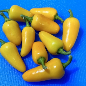 Сорт острого перца неизвестного происхождения. Семена изначально получили из Бельгии без родословной в качестве подарка. Высота растения до 60 см. Стручки пулевидные до 4 см в длину, в технической зрелости светло-зеленого, при созревании желтеют. Окраску формируют два каратиноида: лютеин и виолоксантин. Последний отвечает за оранжевый оттенок. Срок вегетации 130–140 дней при выращивании в теплице. Вкус стручков сладкий с небольшой кислинкой. Стенка толстая. Этот признак, наверное, и побудил назвать этот сорт халапеньо. Острота до 15 тысяч сковиллов. Лучше всего подходит для цельноплодного консервирования.