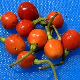 Уникальный сорт острого перца. Является первым вариегатный сортом вида c.chinense. Растение высотой до 50 см. Листья имеют уникальный вариегатный рисунок, который отличается от вариегатности c.annuum. Он более мелкий и очень красивый. Сорт ценен именно этим. Потому что стручки мелкие шарообразные до 1, 5 см в диаметре и их образуется на растении не так уж и много. Острота до 150 тысяч сковиллов.