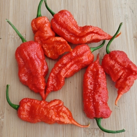 Растение высотой до 1 метра с активным боковым ветвлением. Боковые ветви отрастают из всех узлов до первого ветвления и на них образуется основной урожай. Стручки каскадами свисают сверху вниз. Урожайность с одного растения выше 2, 5 кг. Острота до 1, 5 миллиона сковиллов. Вкус сладкий, аромат яркий фруктово — цветочным.