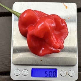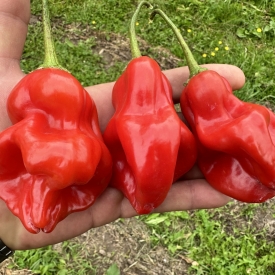 Сорт острого перца, который появился у нас в популяции Zebrange. От последнего отличается только стручками. Стручки монохромные насыщенно красного цвета. Стручки очень крупные, самые крупные среди колокольчиковидных баккатумов. Весом до 50 г и больше. В остальном все признаки идентичны с Zebrange. Расщепление произошло только по признакам, определяющим характеристики стручка.